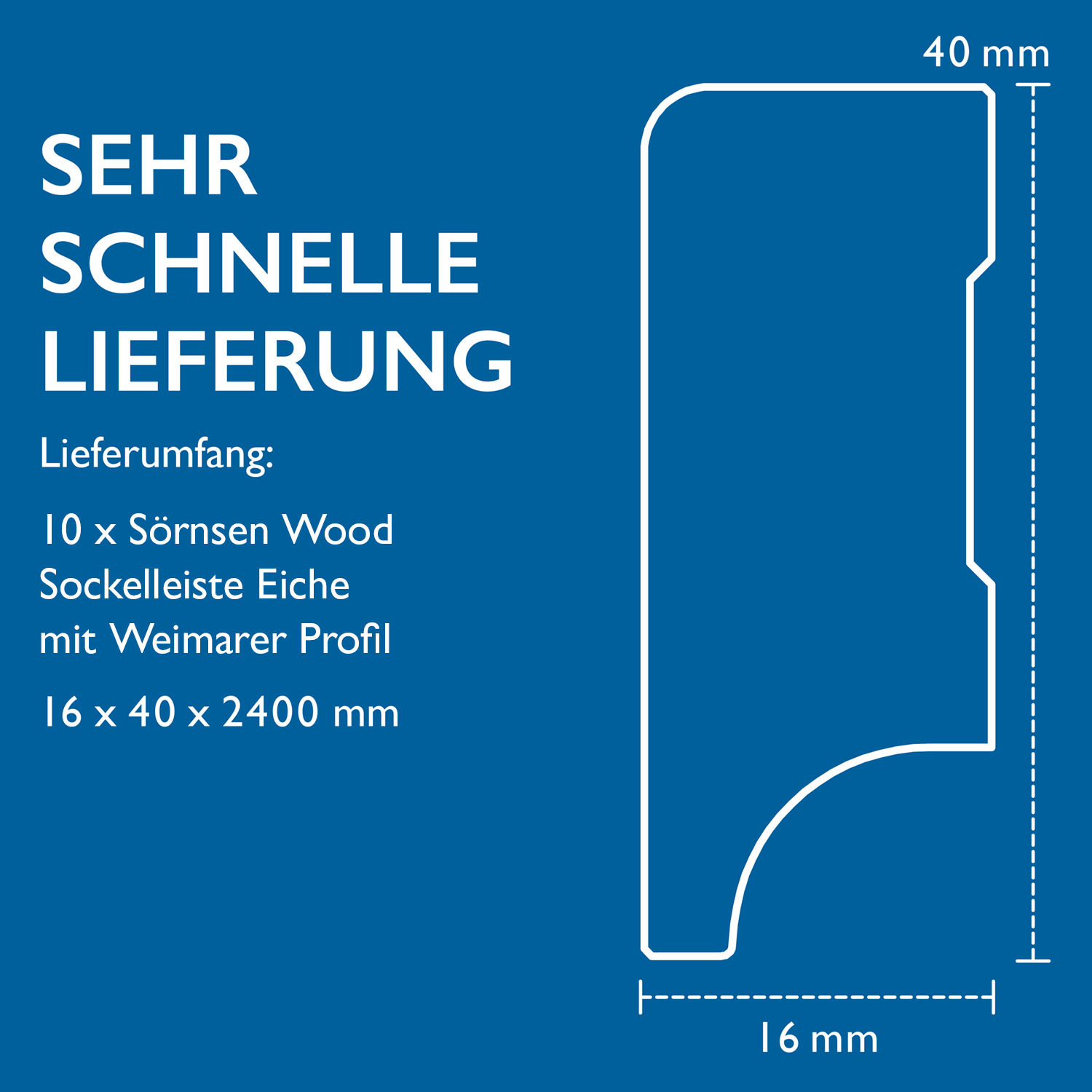 Produktinformationen "10x Sockelleiste Eiche mit Weimarer Profil, natur matt, 16 x 40 x 2400 mm, Sörnsen Wood"