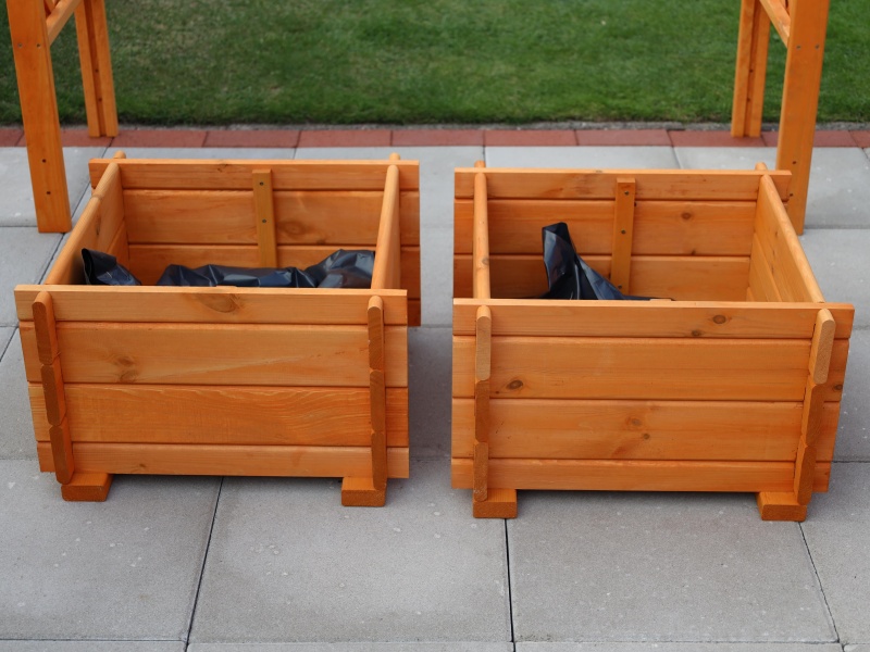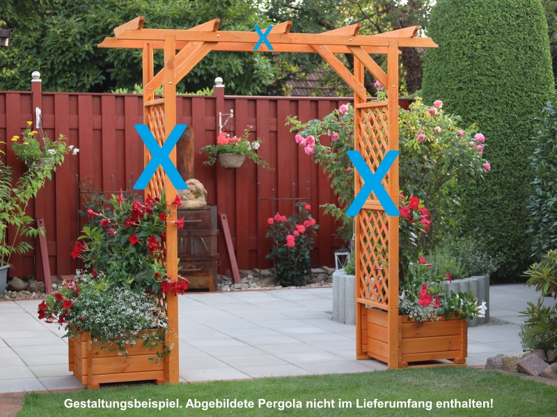 Diese 2 Pflanzkästen sind die ideale Ergänzung für Rosenbögen und Pergolen. Um die Stabilität der Gesamtkonstruktion zu erhöhen, lassen sich die Pflanzkästen aus massivem Kiefernholz mit der Pergola oder dem Rosenbogen verschrauben. Die Pergolen und Rosenbögen sind nicht Teil dieses Angebotes und müssen separat bestellt werden.