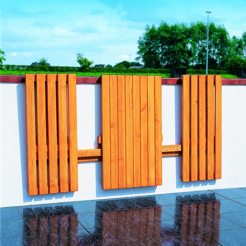 Wo der Platz knapp ist, bietet sich die Balkonklappgarnitur an. Nach Gebrauch lassen sich der Tisch und die beiden Bänke einfach an die Wand klappen. Aus massivem Kiefernholz - wetterfest imprägniert.