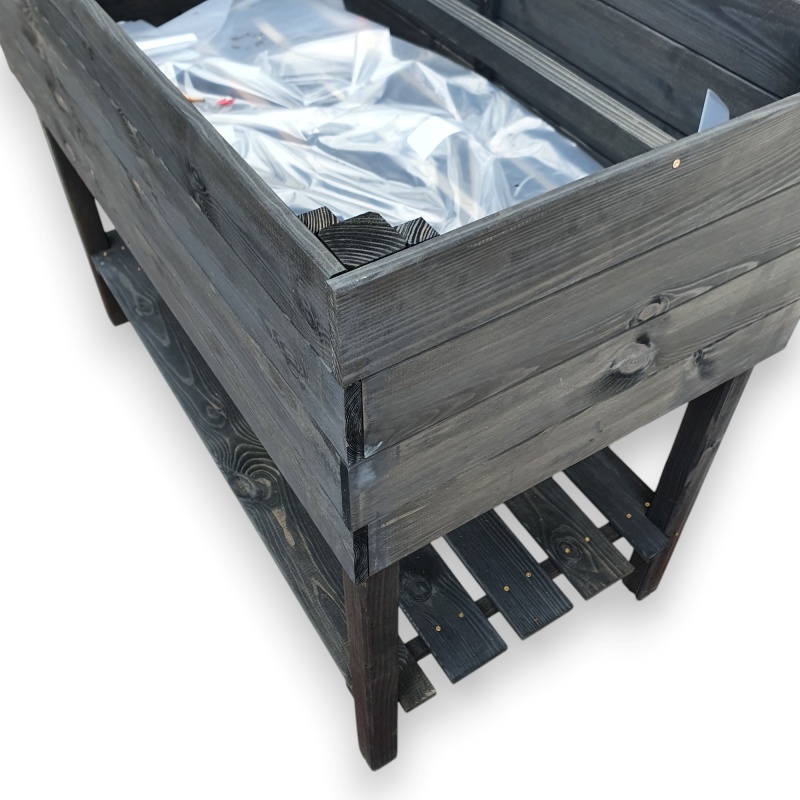 Dieses Hochbeet aus FSC®-zertifiziertem Kiefernholz steht auf stabilen Beinen, damit man bequem im Stehen arbeiten kann. Es eignet sich durch seine kompakten Abmessungen auch hervorragend für die Verwendung auf kleineren Balkonen. Massives Kiefernholz, anthrazit imprägniert, inkl. Pflanzfolie.