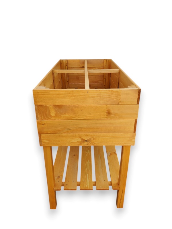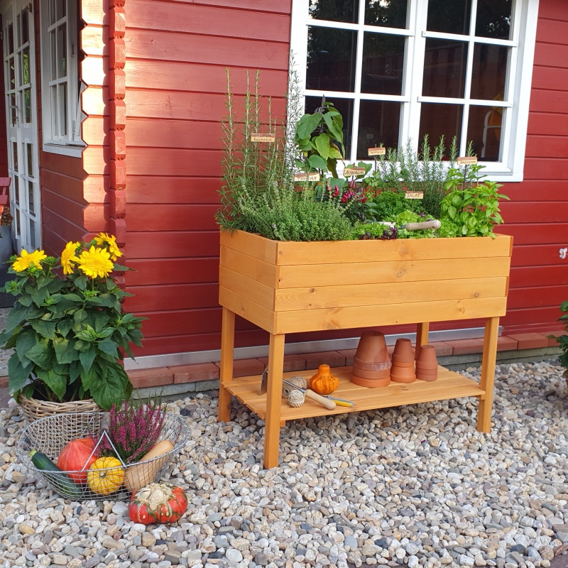 Dieses Hochbeet aus FSC®-zertifiziertem Kiefernholz steht auf stabilen Beinen, damit man bequem im Stehen arbeiten kann. Es eignet sich durch seine kompakten Abmessungen auch hervorragend für die Verwendung auf kleineren Balkonen. Massives Kiefernholz, honigbraun imprägniert, inkl. Pflanzfolie.