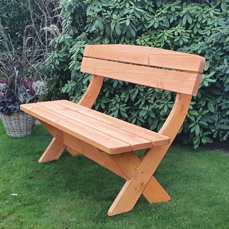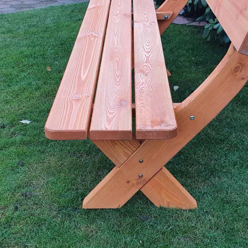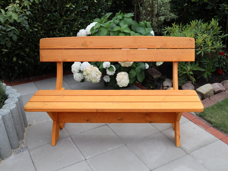 Diese stabile Gartenbank mit geneigter Rückenlehne wurde aus imprägniertem und somit wetterbeständigem FSC®-zertifizierten Nadelholz gefertigt. Sie werden somit lange Freude an dieser stilvollen honigbraunen Sitzbank haben. Durch die kompakten Abmessungen bietet diese massive Bank Platz für bis zu 3 Personen und lädt zu gemütlichen Stunden im eigenen Garten ein. Die Materialstärke beträgt 3 cm.