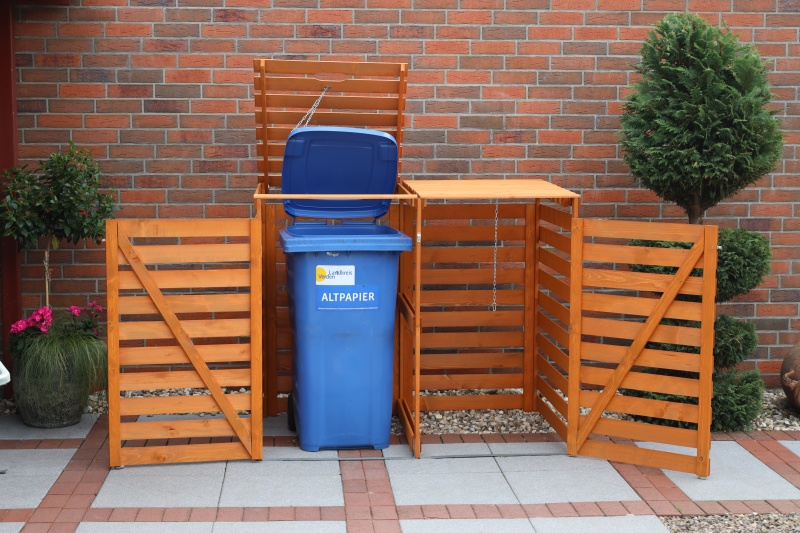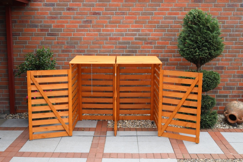 Produktinformationen "Promadino Mülltonnenbox Vario V für 2 Tonnen, honigbraun"