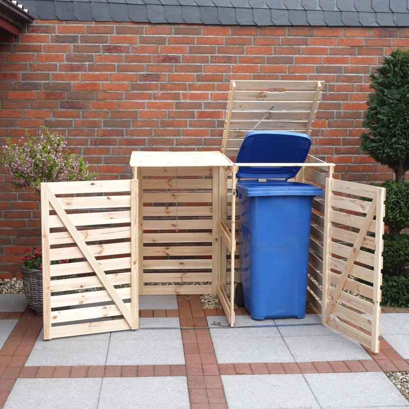 Produktinformationen "Promadino Mülltonnenbox Vario V für 2 Tonnen, natur"