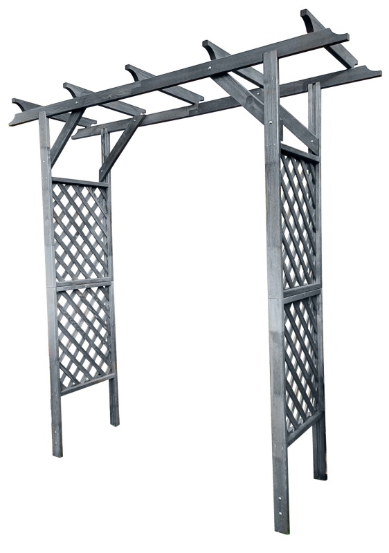 Die Pergola "Bamberg" wird aus massivem Kiefernholz gefertigt und wetterfest imprägniert. Für eine gute Standfestigkeit sorgen Bodenanker aus Stahl, die bereits im Lieferumfang enthalten sind.