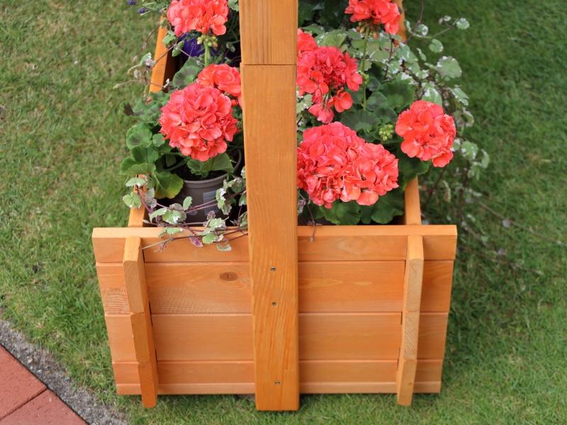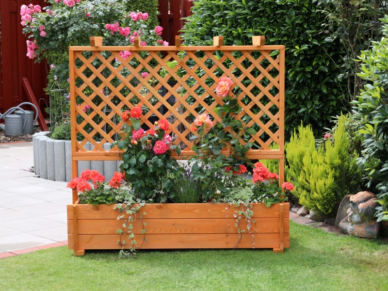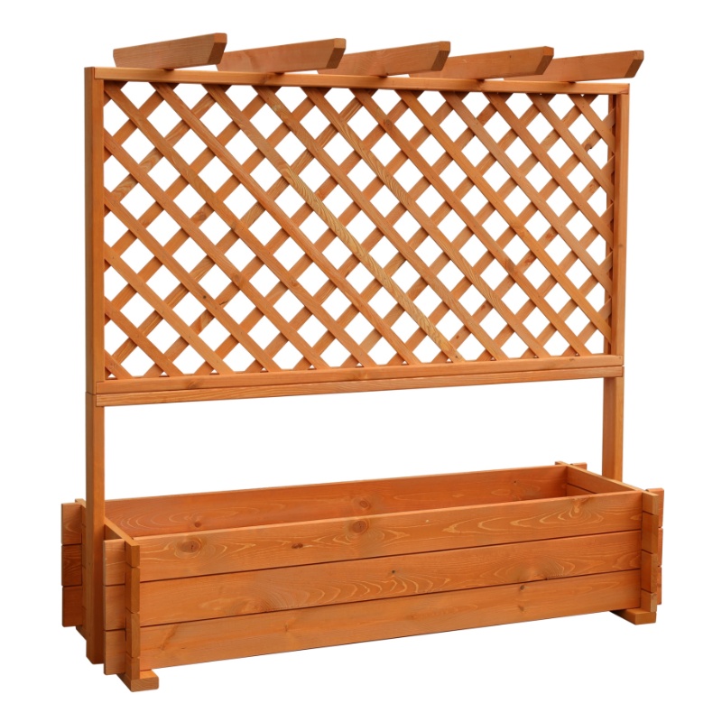 Dieser Rankkasten mit Pergola eignet sich ideal zur Terrassenabtrennung und -begrünung. Er wird aus massivem Kiefernholz gefertigt und ist wetterfest imprägniert.