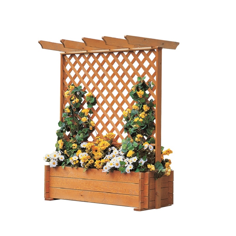Ideal geeignet zur Terrassenabtrennung und -begrünung. Er wird aus massivem Kiefernholz gefertigt und ist wetterfest imprägniert.
