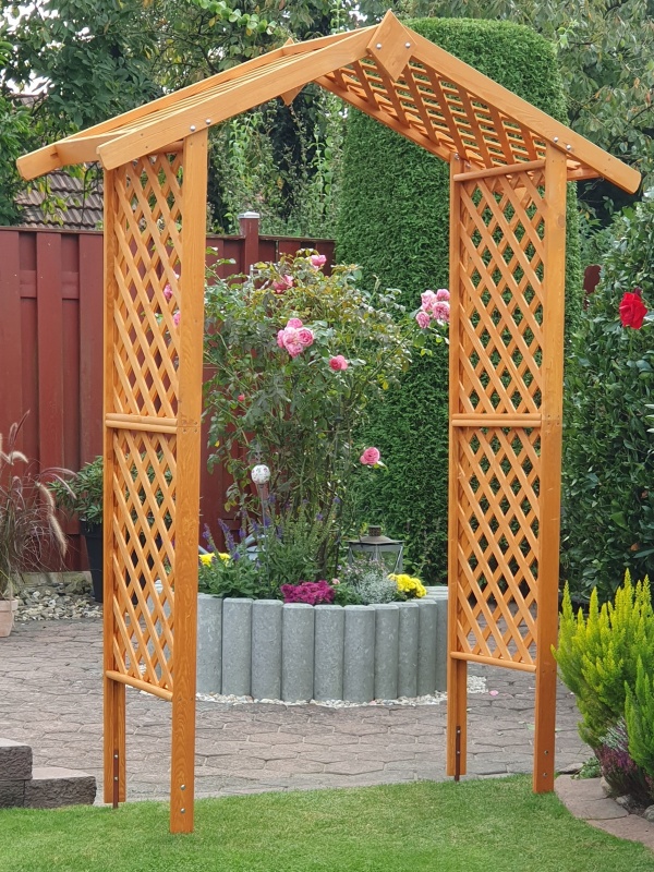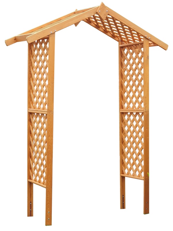 Dieses Eingangselement bringt Kletterrosen erst richtig zur Geltung. Es wird aus imprägniertem Kiefernholz gefertigt und lässt sich einfach montieren. Vier Erdanker sorgen für einen stabilen Stand. Als Zubehör ist ein Pflanzkaste-Set lieferbar.