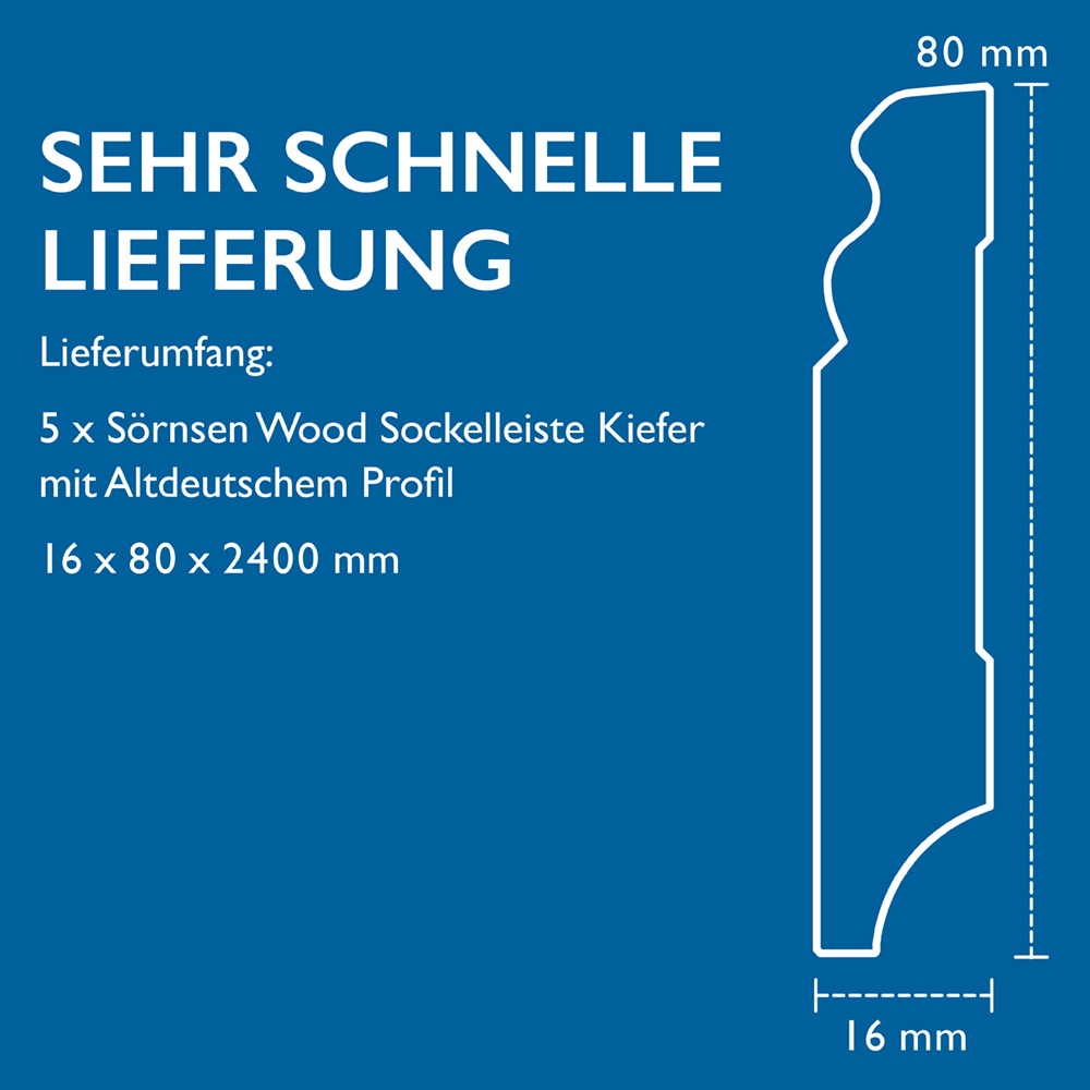 Produktinformationen "5x Sockelleiste Kiefer mit Altdeutschem Profil, weiß, 16 x 80 x 2400 mm, Sörnsen Wood"
